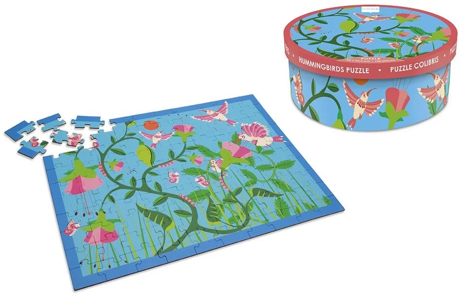 DAM Kratzpuzzle 100Stück: KOLIBRIEN 60×43,5cm, in Schachtel diam.26xH10cm, 5+