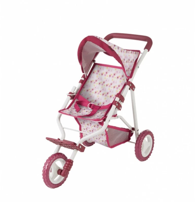 Götz 3402380 Happy Flowers 3-rädriger Puppenbuggy in Bordeaux / pink mit Blümchenmuster – passend für alle Puppen bis 48 cm – geeignet für Kinder ab 3 Jahren