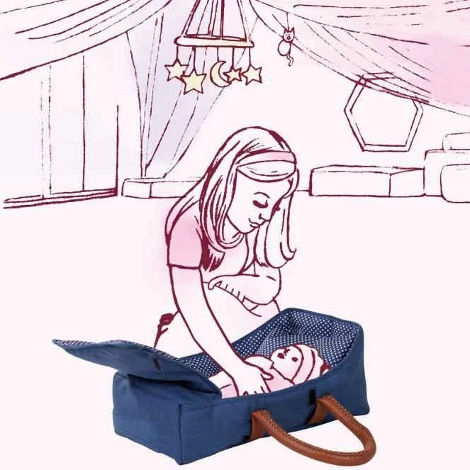 Götz Needful Things, Tragetasche „Denim & spots“, Babypuppen 30-33 cm / Standpuppen 27 cm / 36 cm