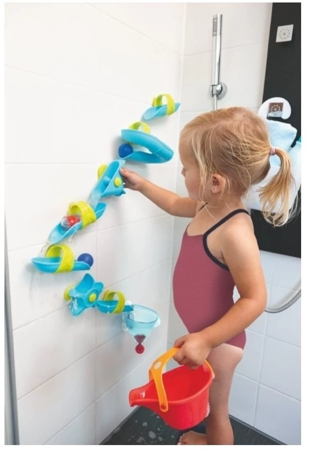 - Saugnäpfe befestigen und los geht der spritzige Kugelbahn-Spaß im Badezimmer