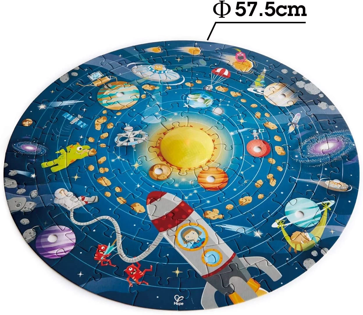 Hape Puzzle “Sonnensystem” | Rundes Sonnensystem Puzzle Spielzeug für Kinder, Holzteile und eine leuchtende LED-Sonne