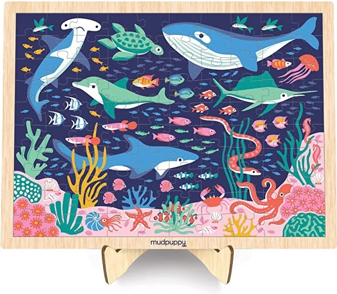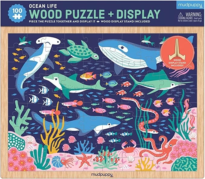 Mudpuppy 100 Stück Holz Puzzle + Displ/Ocean Life