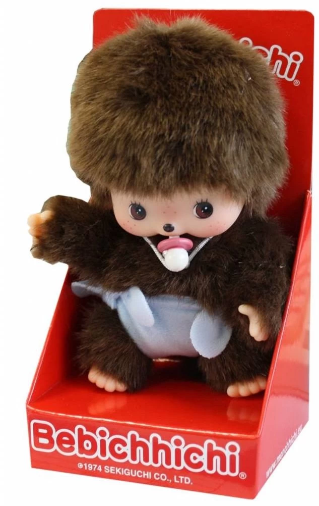 Sekiguchi 235370 – Original Bebichhichi Junge, aus braunem Plüsch, mit blauer Windel, ca. 15 cm